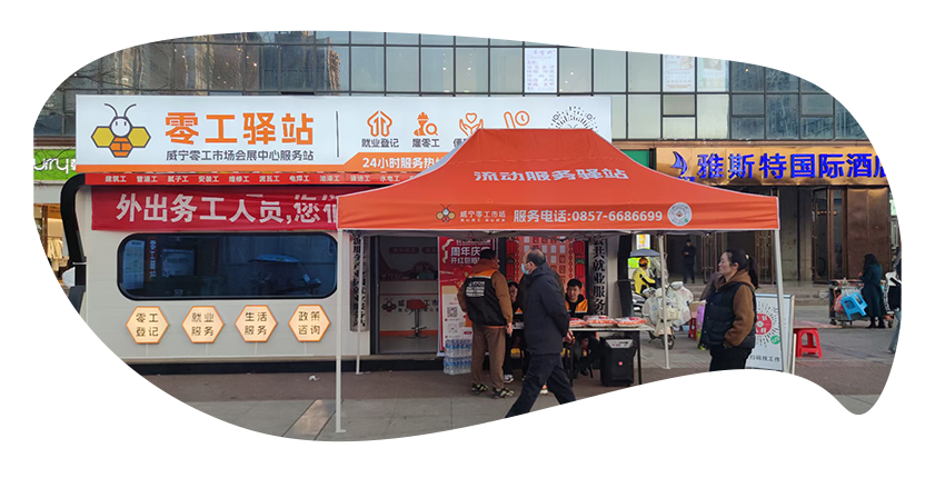 形成了线下“调度中心+零工市场+零工驿站”的空间布局和网格化管理。线下设立候工大厅、综合服务站、零工食堂、培训中心、实操实检基地等场所,为零工提供吃饭、喝水、烤火、休息、候工、维权、培训等服务,让零工有阵地、有组织的舒心就业,充分为零工提供政策咨询、法律援助等服务,增强零工维权意识,保护零工权益。